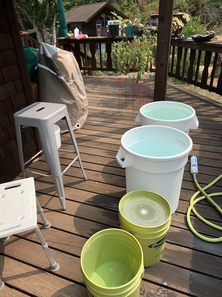 4 buckets total. (Recipe is for 5 gallon buckets but we use 20 gallon buckets for large stems)