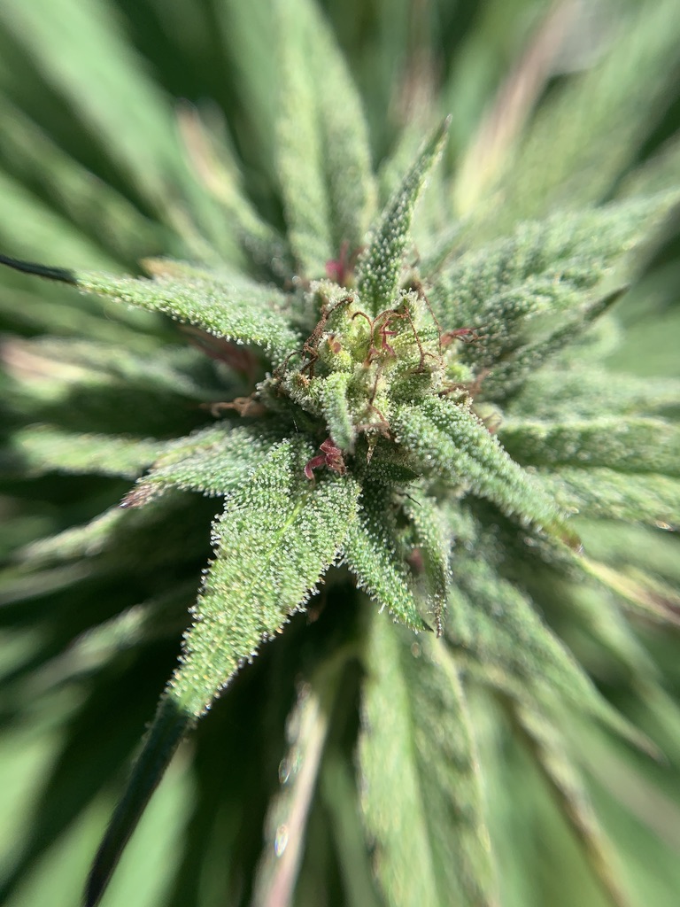 There was an exception in the last blog. We noticed an entire bough of Sour Tsunami began flowering about a week before the rest of the plant. The six flowers on that bough are the only part of the plant ready. I looked all over the rest of the plant, and she is still a couple of days away. But this one was ready on that day, so I brought that one bough down. I will inspect the other flowers several times a day until she proves her majority is ready. At that time, the remainder of the plant will be harvested.