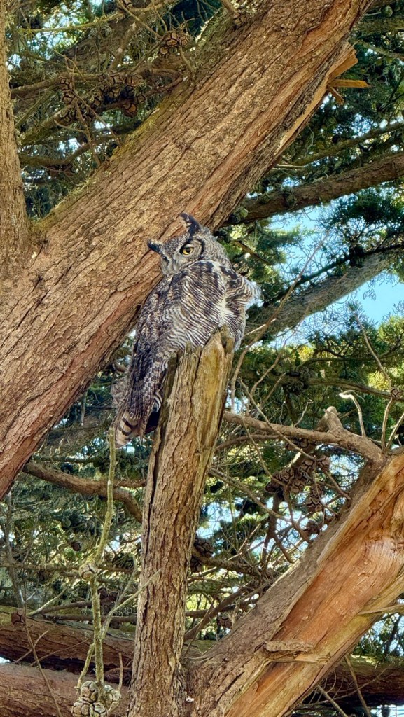 Last note for this week: A wish for safe travels home to one of my old students, and our friend, Ms. N, who travelled all the way from Wisconsin to visit, study and play. Among many highlights, we got to see a Great Horned Owl sitting in a tree near us.
