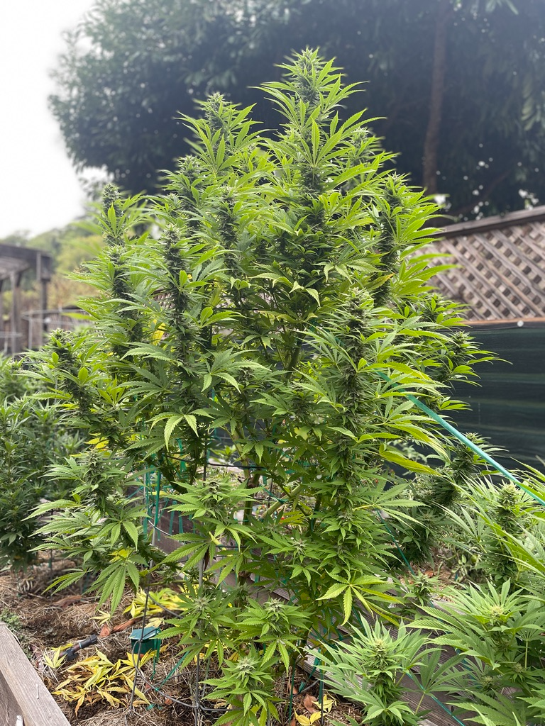 This has become a distinct possibility, with the remants of a tropical storm streaming up the coast while I write this. As with rain before, depending on how much falls, we might be harvesting a couple of plants early. Specifically, both Fruitcake plants, 18 and 21, are laboring after the third of an inch of rain. As previously written, Fruitcake is not an easy plant to grow outdoors. She has more in common with Granddaddy Purple than most cultivars. She’s clustered, sticky, and tricky. But her medicine is so sublime, we endure and carry on. That said, one or both might come down tomorrow, while you’re reading this blog.
